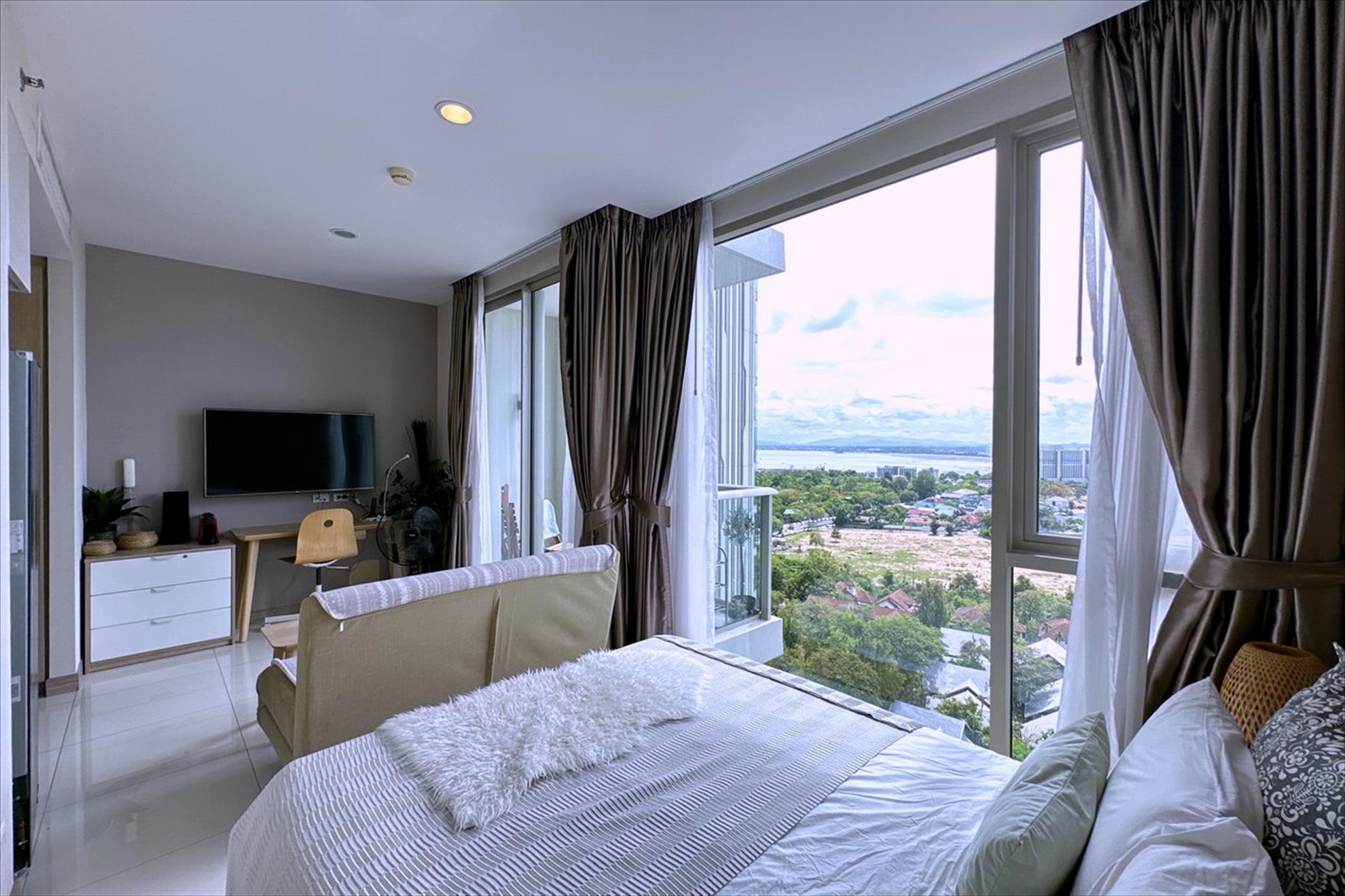 3.1 M. THB: Riviera Wongamat Condo zu verkaufen, Studio 31 qm, europäische Küche, Badezimmer, voll möbliert, Balkon, Teilweise Meer- und Stadtblick,, Ausländerquote * Verkauf mit Mieter